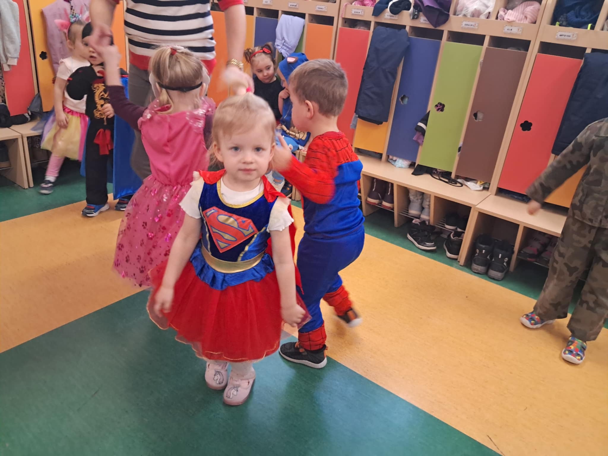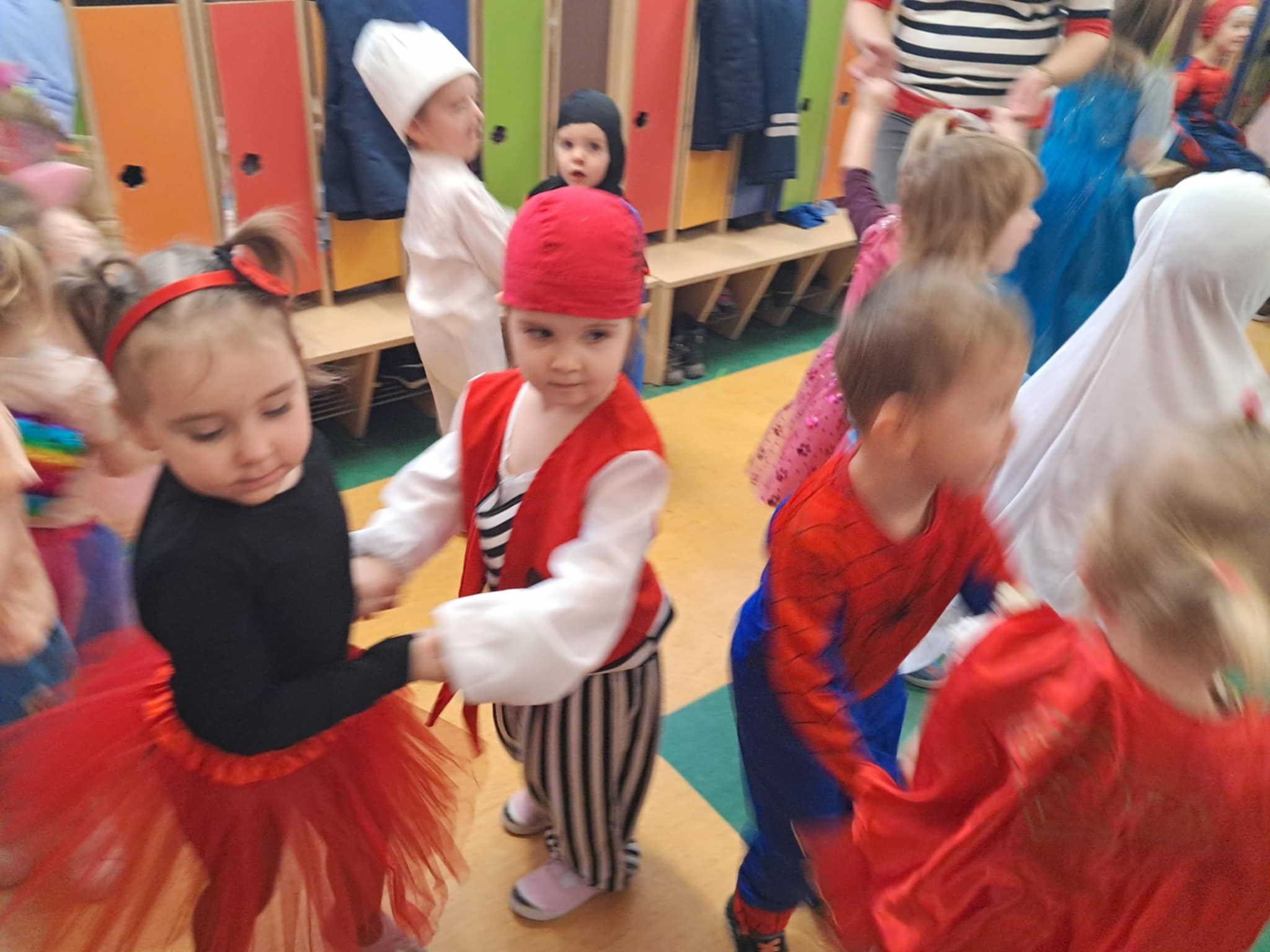 W dniu 30.01.2026r. w naszym przedszkolu odbył się bal karnawałowy. Tego dnia już od rana w przedszkolu pojawiały się kolorowe postacie. Dzieci przebrane były za bohaterów znanych bajek. Rozpoznać dzieci było bardzo trudno. Dzieci świetnie się bawiły. Na sali podczas pląsów robiło się kolorowo, wszyscy bawili się wesoło, uśmiech nie znikał z twarzy.