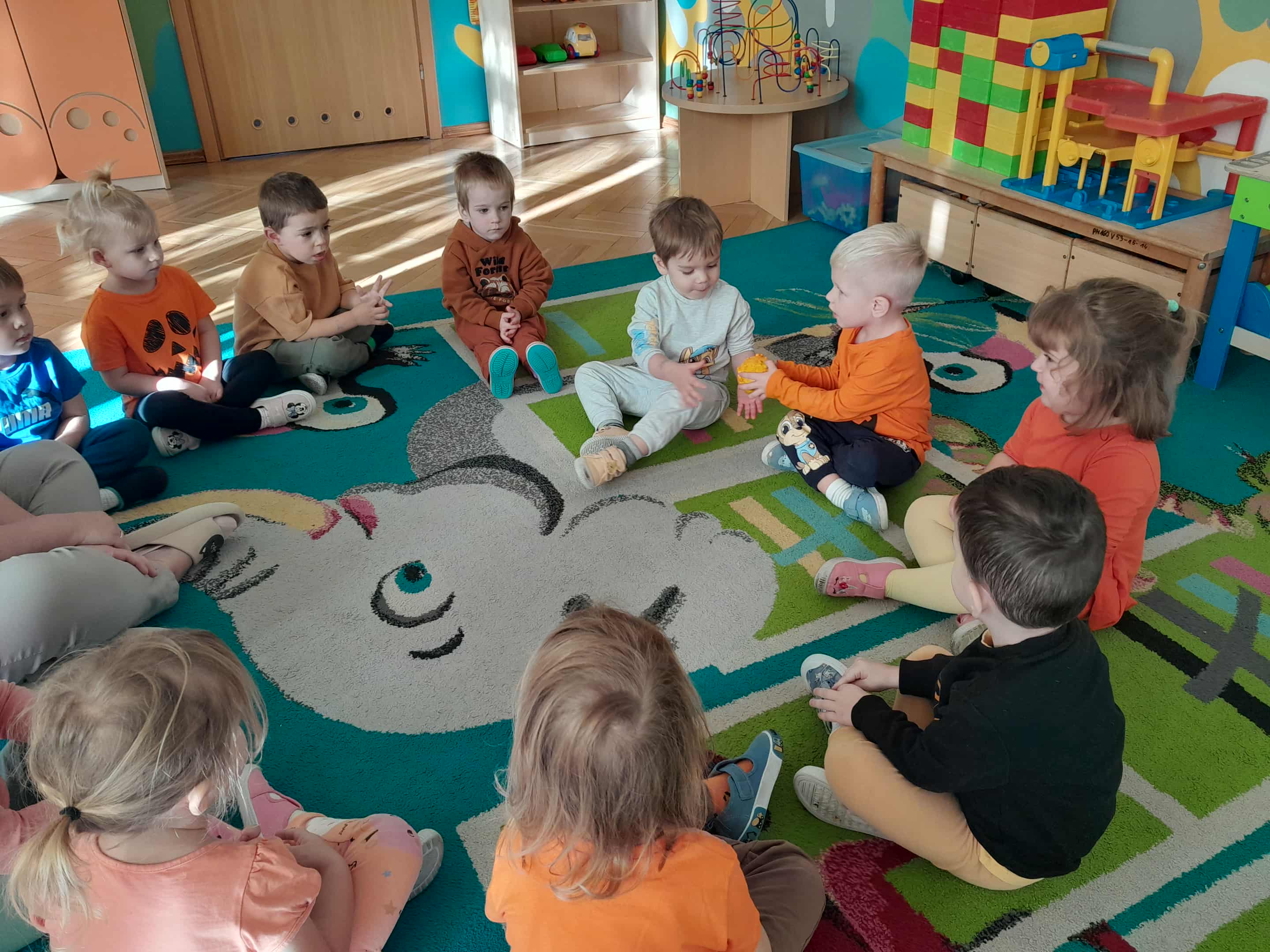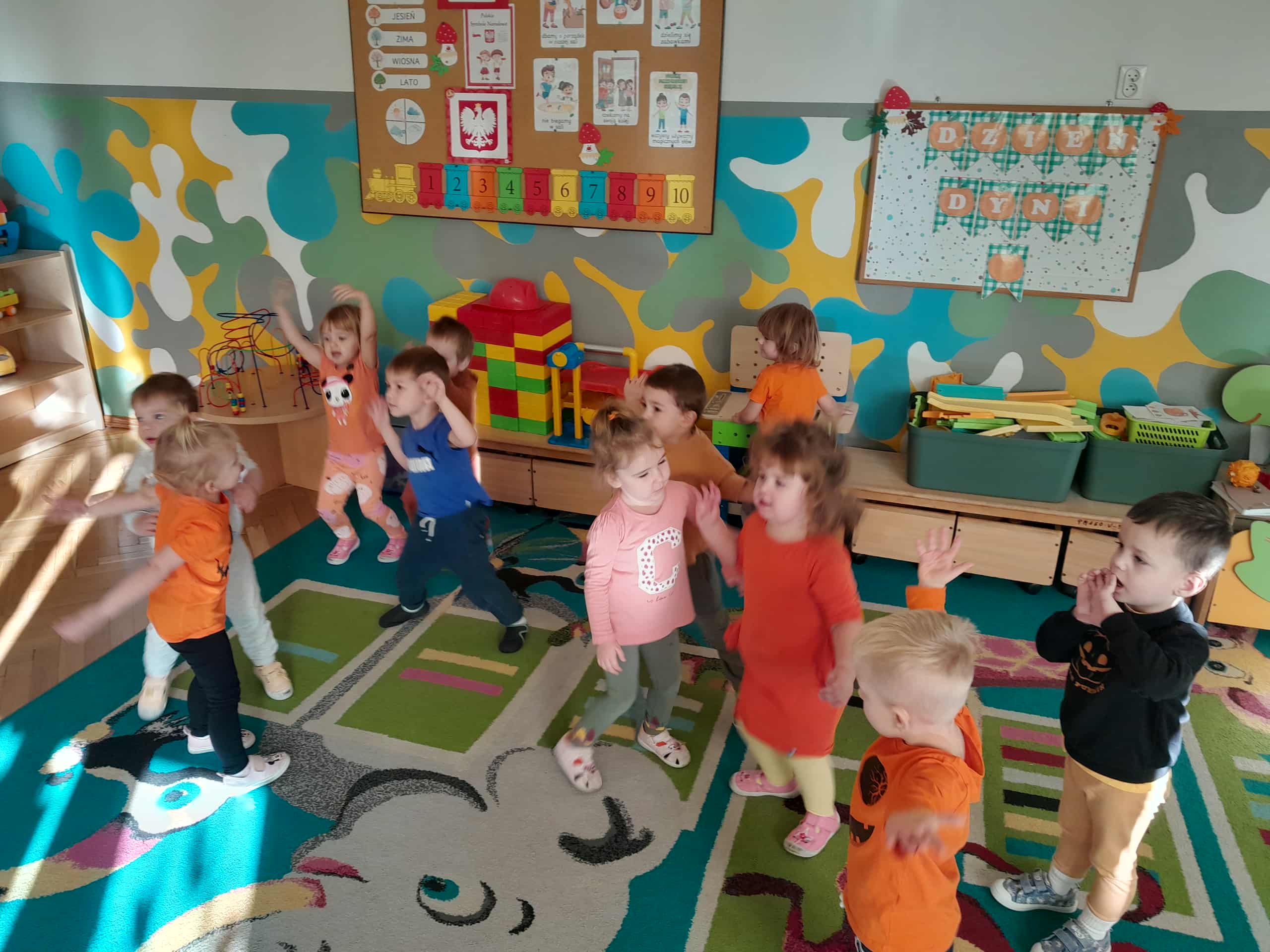 Wspólnie uczestniczyliśmy w zajęciach, podczas których poznaliśmy bardzo zdrowe i urodziwe warzywo jakim jest dynia. Dzieci ubrały się na kolor pomarańczowy. Wzięliśmy udział w licznych zabawach z udziałem dyni. Dzieci wykonały wspólną pracę plastyczną.