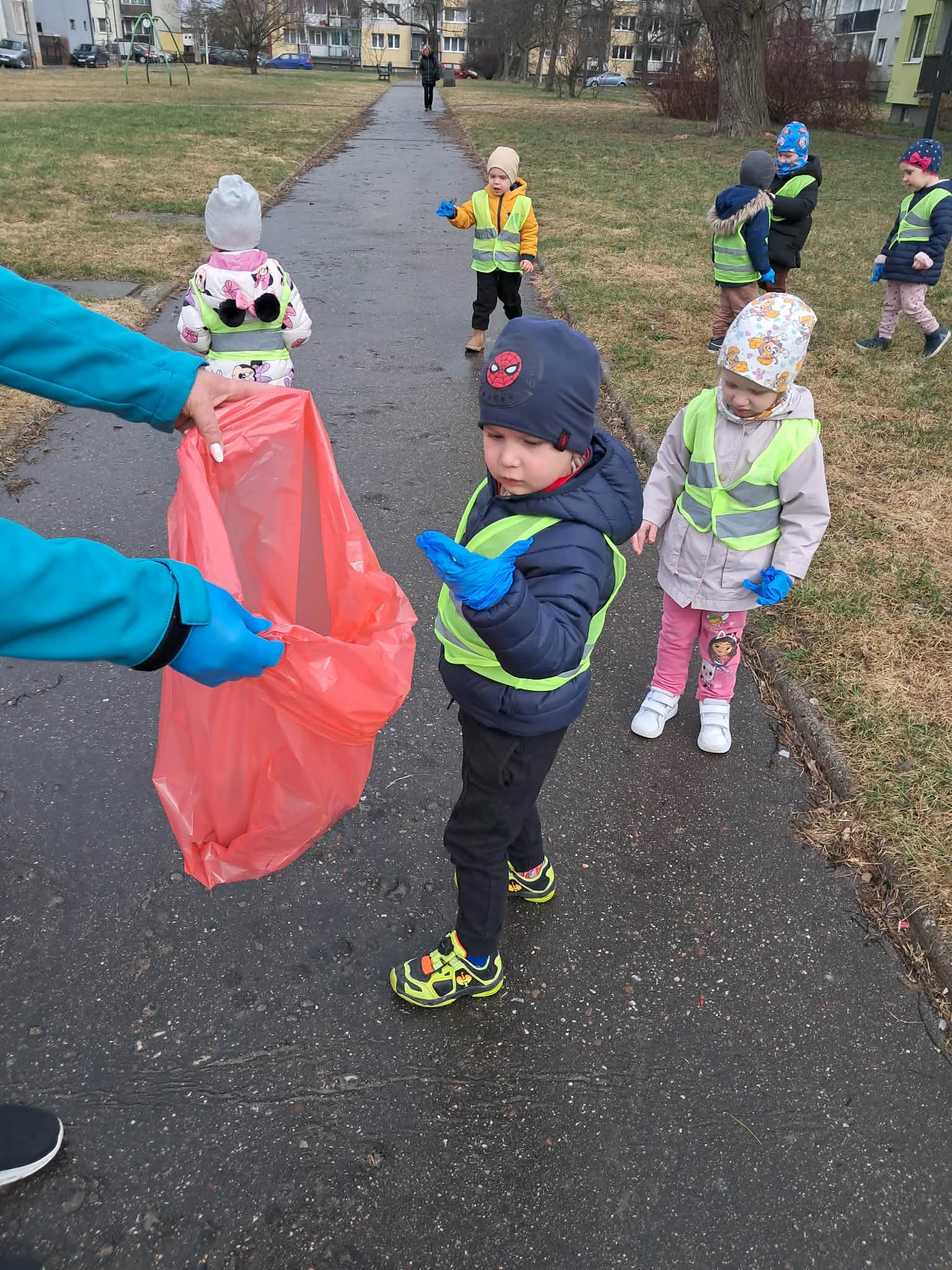 W związku ze zbliżającą się wiosną dzieci z naszej grupy wzięły udział w akcji „Galante Sprzątanie”. Przedszkolaki z dużym zaangażowaniem pomagały w porządkowaniu terenu wokół przedszkola.