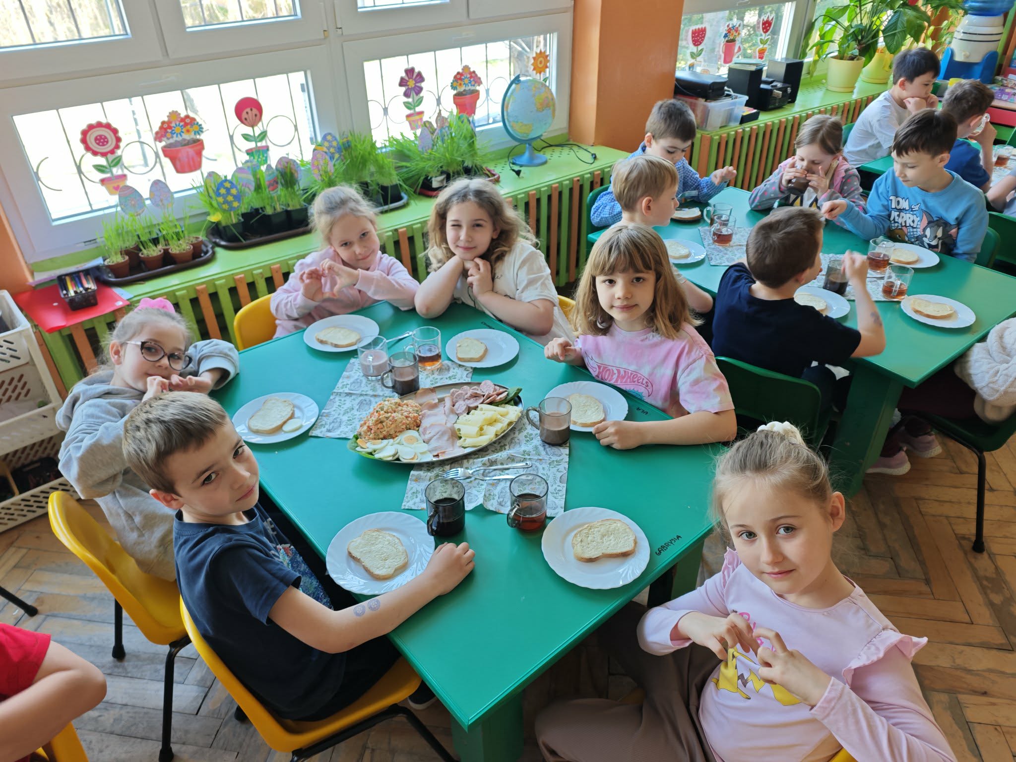 - przygotowywaliśmy się do świat wielkanocnych siejąc owies, wykonując prace plastyczną i zasiadając do świątecznego śniadania w przedszkolu