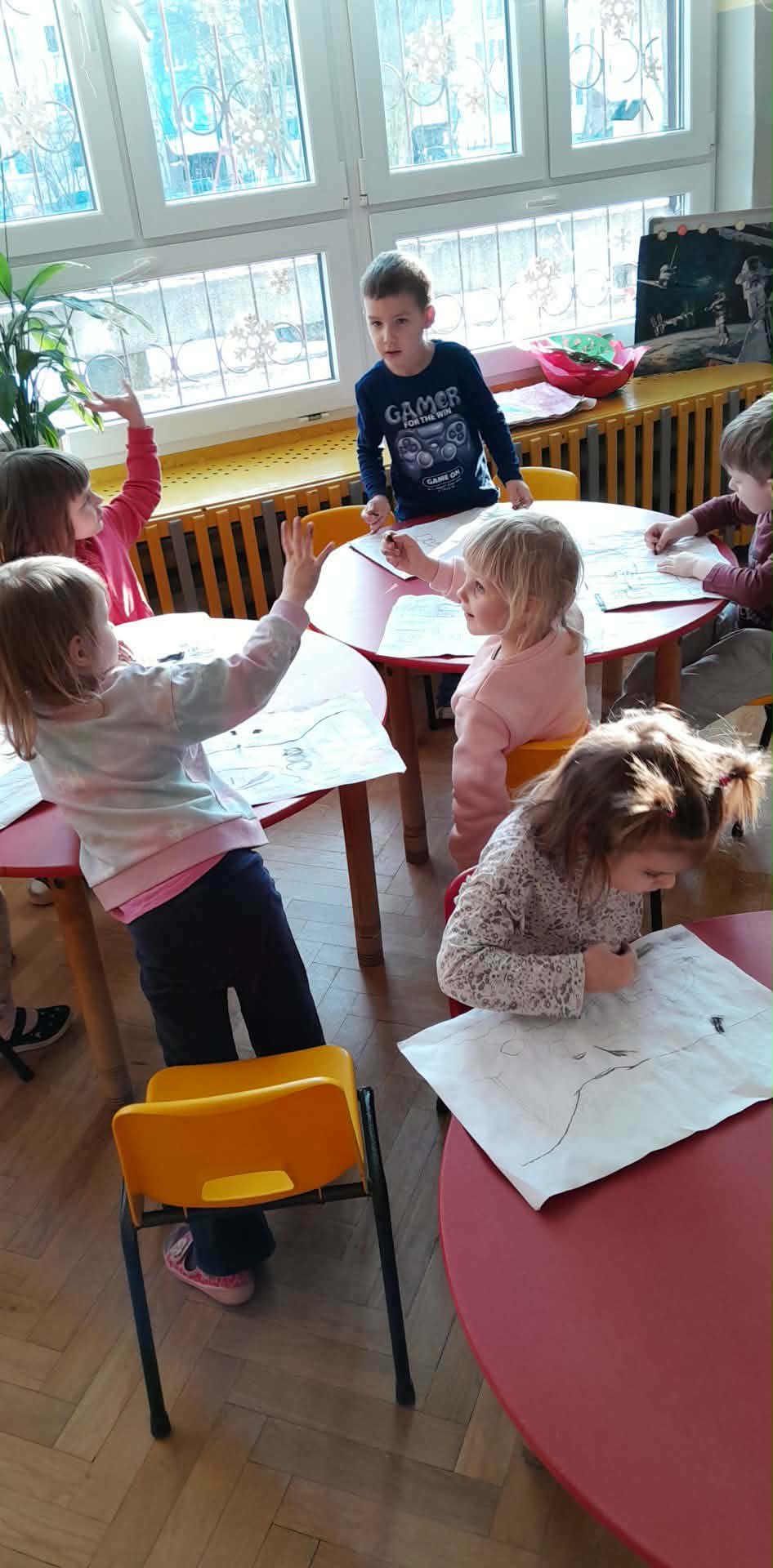 - poznawaliśmy wiedzę na temat planet, gwiazd i pracy astronauty ( oglądaliśmy film edukacyjny, śpiewaliśmy piosnki, tworzyliśmy planety z plasteliny)