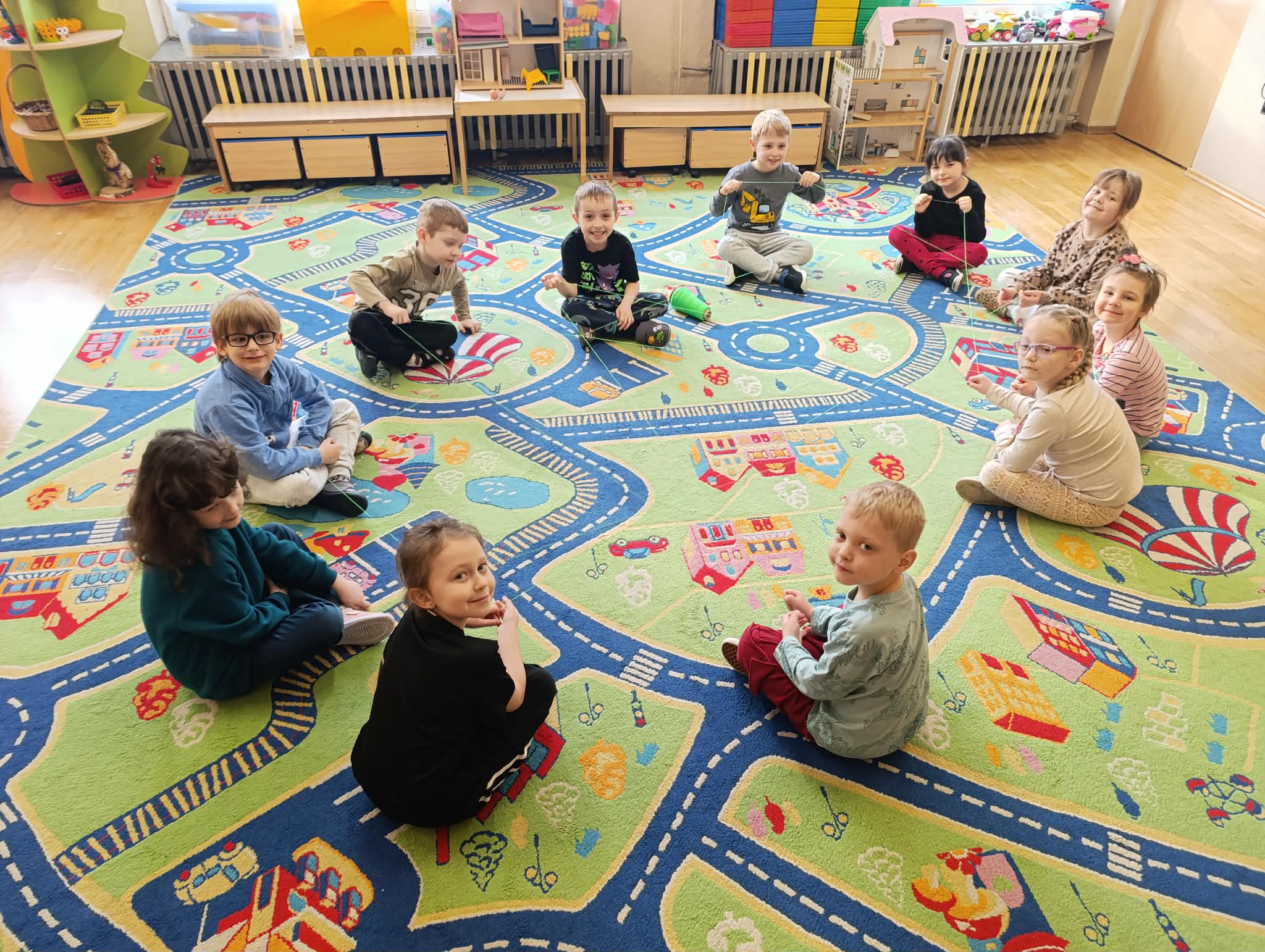 Luty w naszej grupie był miesiącem realizacji różnorodnej tematyki kompleksowej oraz wydarzeń o charakterze edukacyjnym i integracyjnym. W tym czasie omawialiśmy zagadnienia: Baśnie, bajki, bajeczki, Wspaniałe zabawy na śniegu, Tajemnice kosmosu oraz W dziecięcym laboratorium. Dzieci rozwijały zainteresowania czytelnicze, poznawały wybrane utwory literatury dziecięcej oraz uczyły się rozróżniać elementy świata realnego i fikcyjnego. W ramach tematyki zimowej rozmawiały o zasadach bezpiecznej zabawy na śniegu oraz utrwalały wiedzę o właściwym ubiorze w okresie zimowym. Podczas zajęć dotyczących kosmosu przedszkolaki poszerzały wiedzę o planetach, gwiazdach i pracy astronauty. Temat związany z dziecięcym laboratorium był okazją do przeprowadzania prostych doświadczeń i eksperymentów, rozwijających ciekawość poznawczą oraz umiejętność obserwacji.