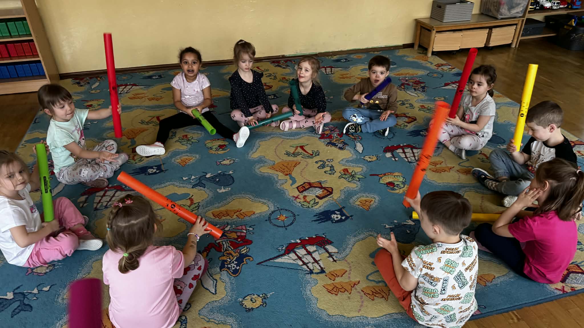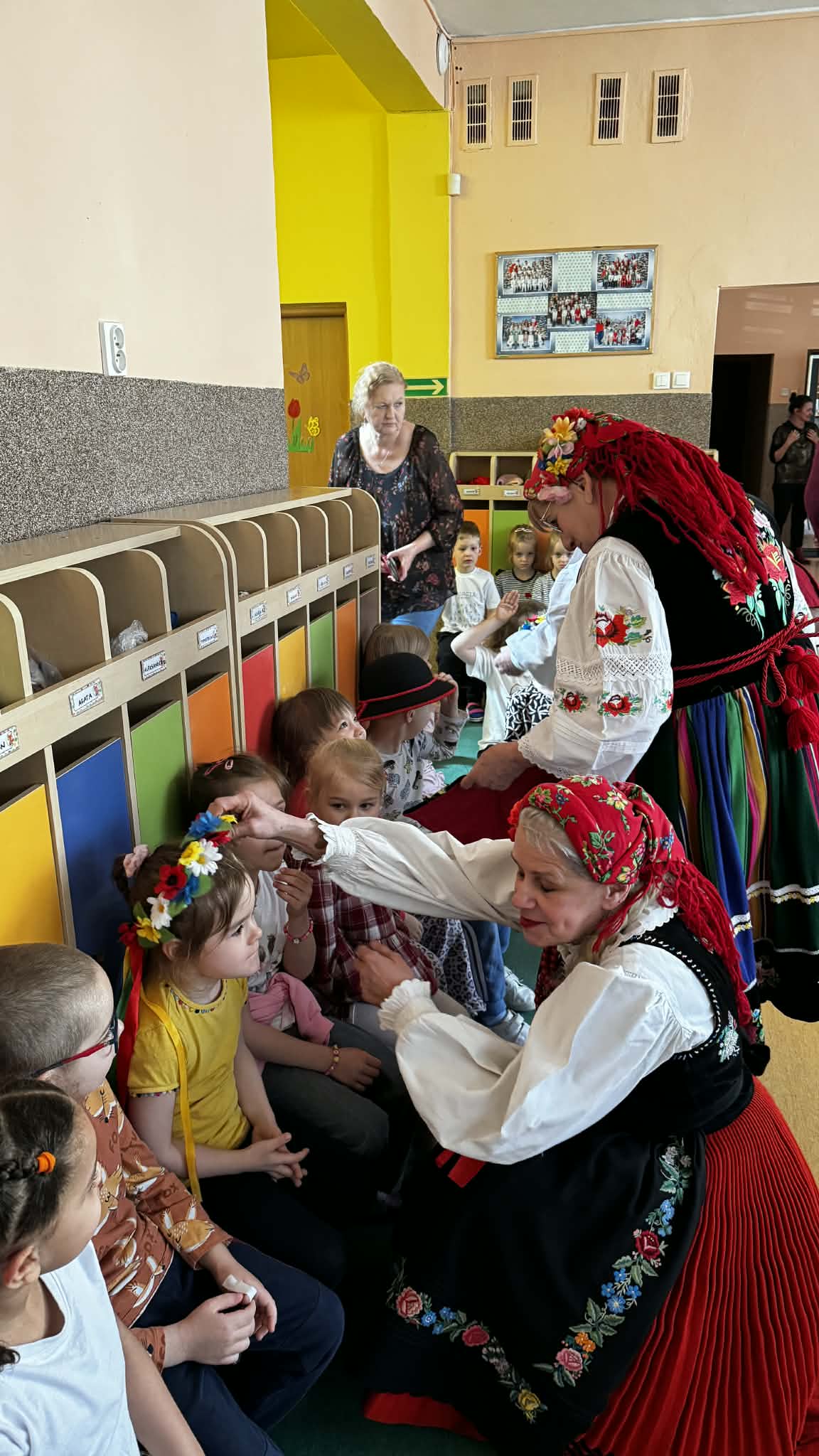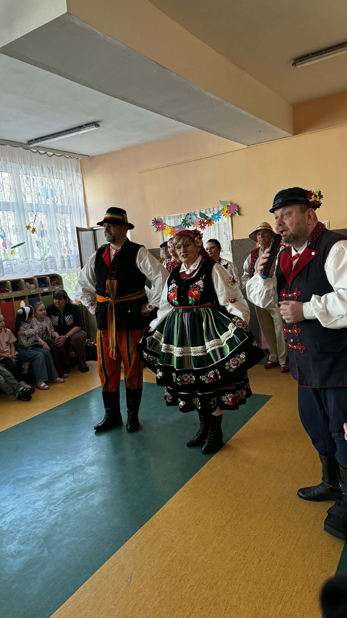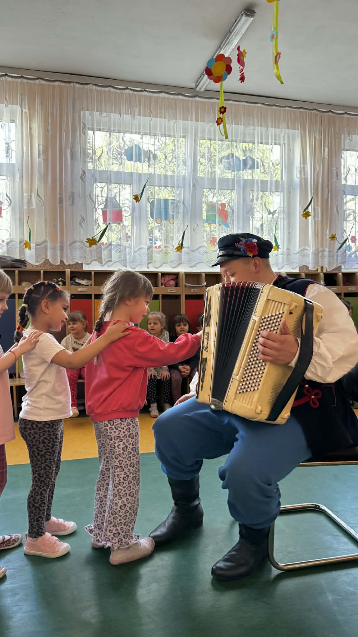 Dn. 18.03.26 gościliśmy w naszym przedszkolu „Zespół Pieśni i Tańca" Dobroń. Podczas spotkania dzieci miały okazję poznać tradycyjne instrumenty, zobaczyć piękne stroje ludowe oraz posłuchać i wspólnie zaśpiewać wesołe przyśpiewki. Było to radosne i bardzo inspirujące spotkanie z kulturą ludową.
