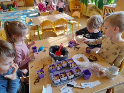 Witamy wszystkich prawie w wiosennym nastroju. W marcu jak w garncu i tak też było. Dzieci rozmawiały o pierwszych wiosennych kwiatach, o ptakach i pąkach na drzewach. Szukały pierwszych zwiastunów wiosny podczas pobytu w przedszkolnym ogrodzie, w swoich pracach plastycznych i piosenkach, pomagały w tworzeniu tablicy okolicznościowej i dekorowaniu sali. Rozmawiały o zmianach w pogodzie, wykonały garnek pogodowych symboli. Doskonaląc swoją sprawność manualną malowały pierwsze wiosenne kwiaty. W ramach zajęć przyrodniczych sadziliśmy owies i codziennie obserwowaliśmy, jak rośnie, poznając etapy rozwoju roślin. Pod koniec miesiąca nasze przedszkolaki z zaangażowaniem przygotowywały się do nadchodzących Świąt Wielkanocnych. Dzieci brały udział w różnorodnych zajęciach plastycznych i tematycznych, podczas których poznawały tradycje związane z Wielkanocą. Dzieci wykonały także ozdoby przeznaczone na nasz coroczny wielkanocny kiermasz.