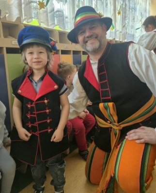 - 18.03 gościliśmy w przedszkolu "Zespół Pieśni Tańca Dobroń" ( poznaliśmy tradycyjne instrumenty ludowe, stroje, przyśpiewki i tańce)