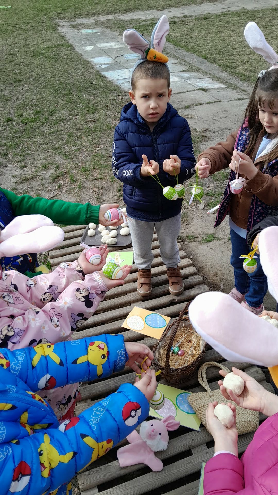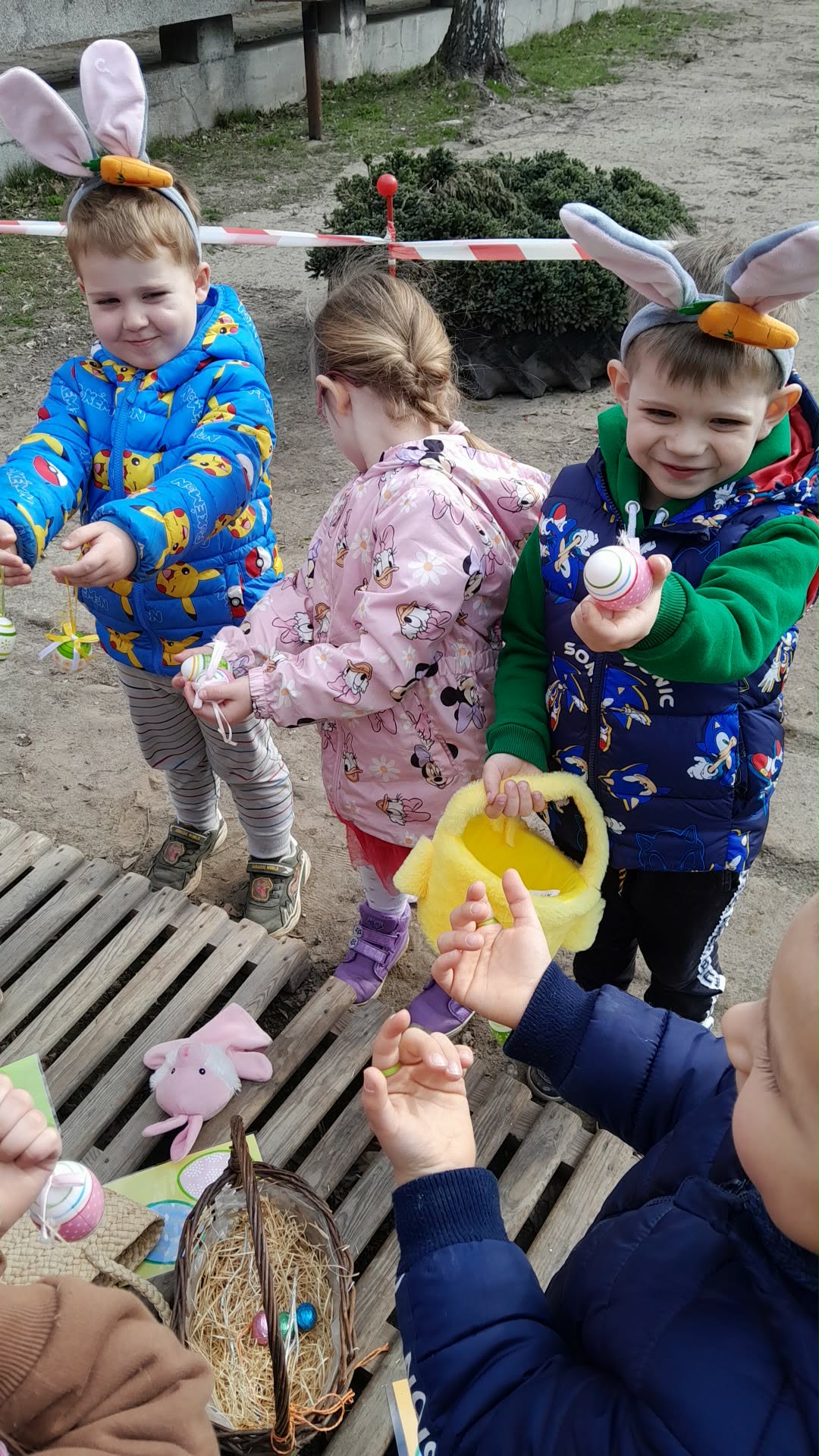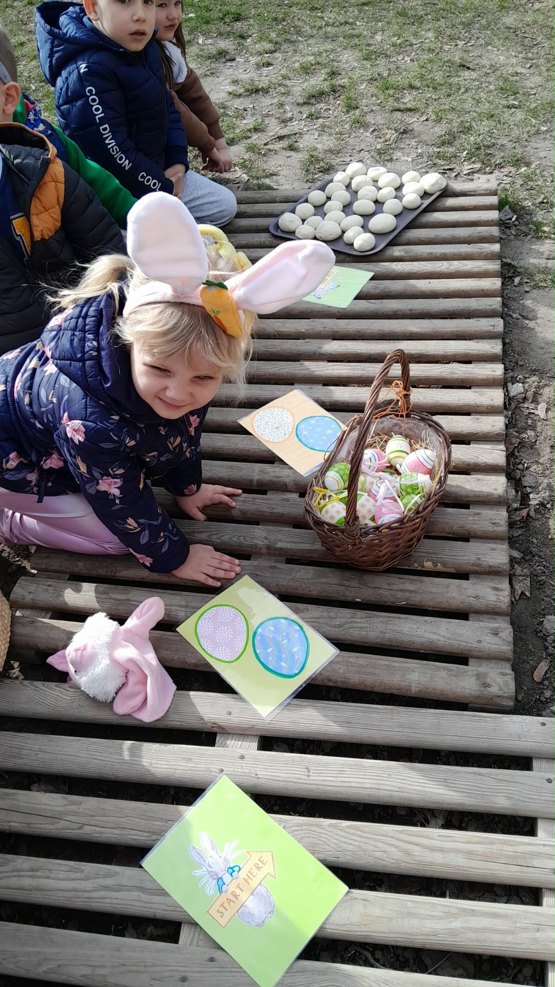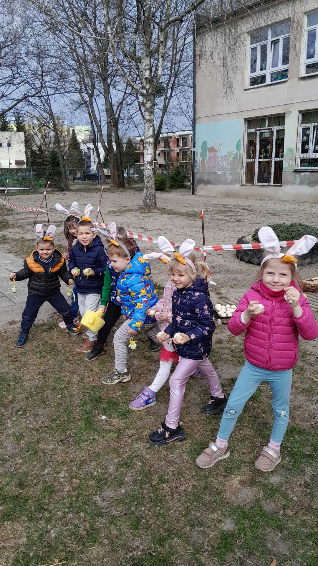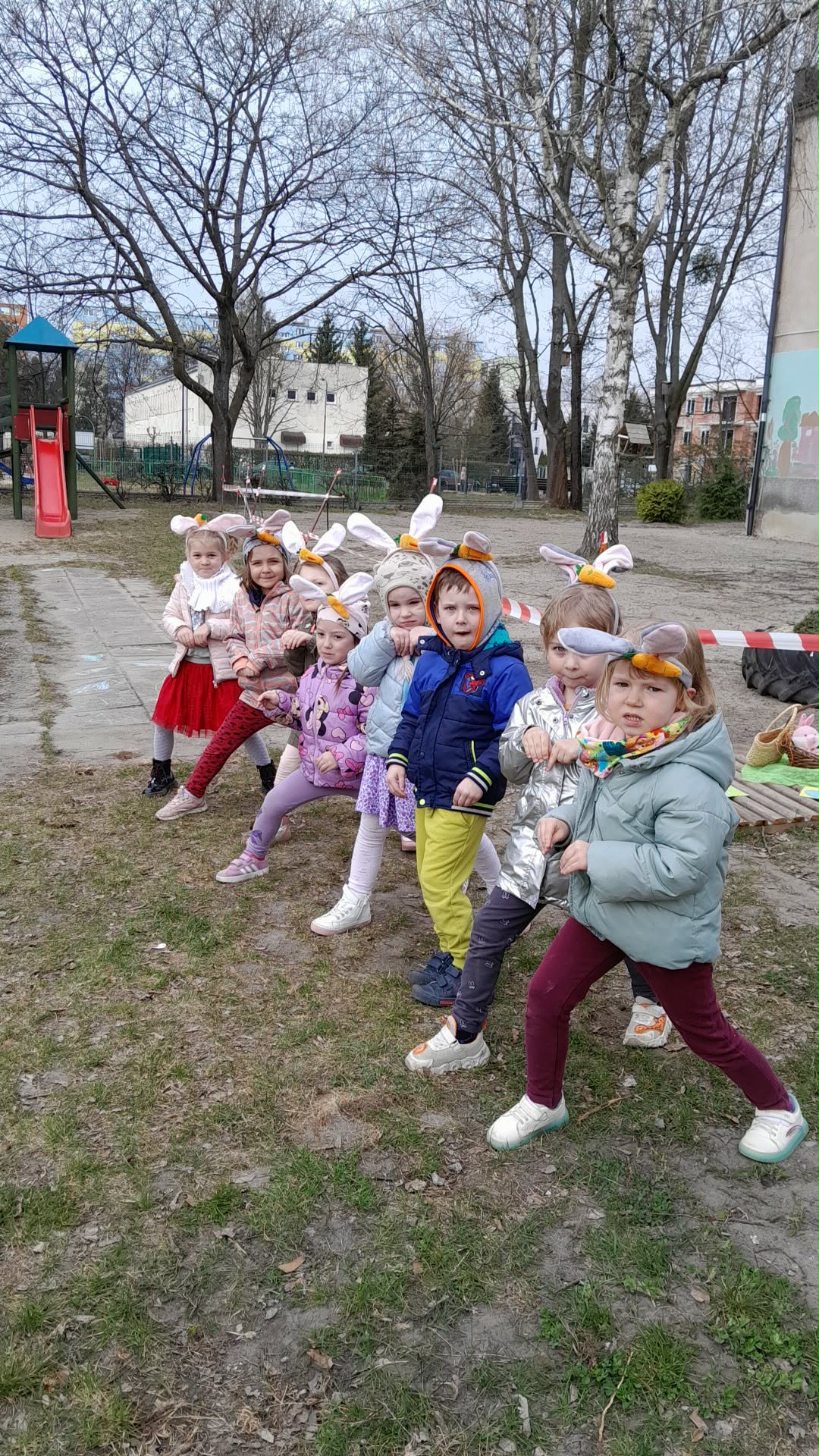 - uczestniczyliśmy w zabawach w ogrodzie przedszkolnym: Poszukiwanie jajek pozostawionych przez zająca - "Easter Egg Hunt"