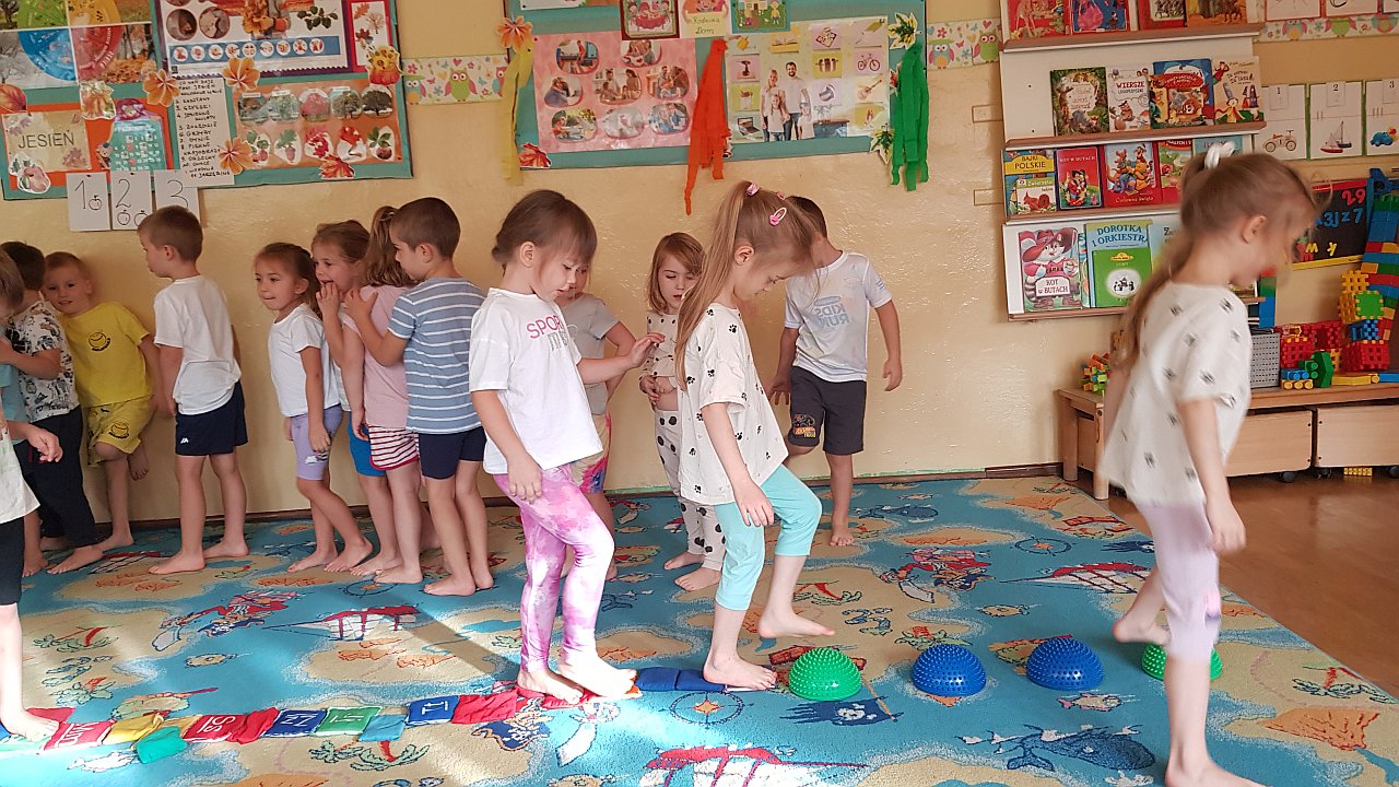 Na początku miesiąca utrwalaliśmy informacje o wybranych warzywach i owocach, rozpoznawaliśmy je za pomocą zmysłów, liczyliśmy, tworzyliśmy zbiory. 5-latki poznały literę O, o oraz zapis cyfrowy liczb 1 i 2.