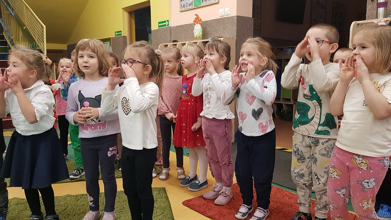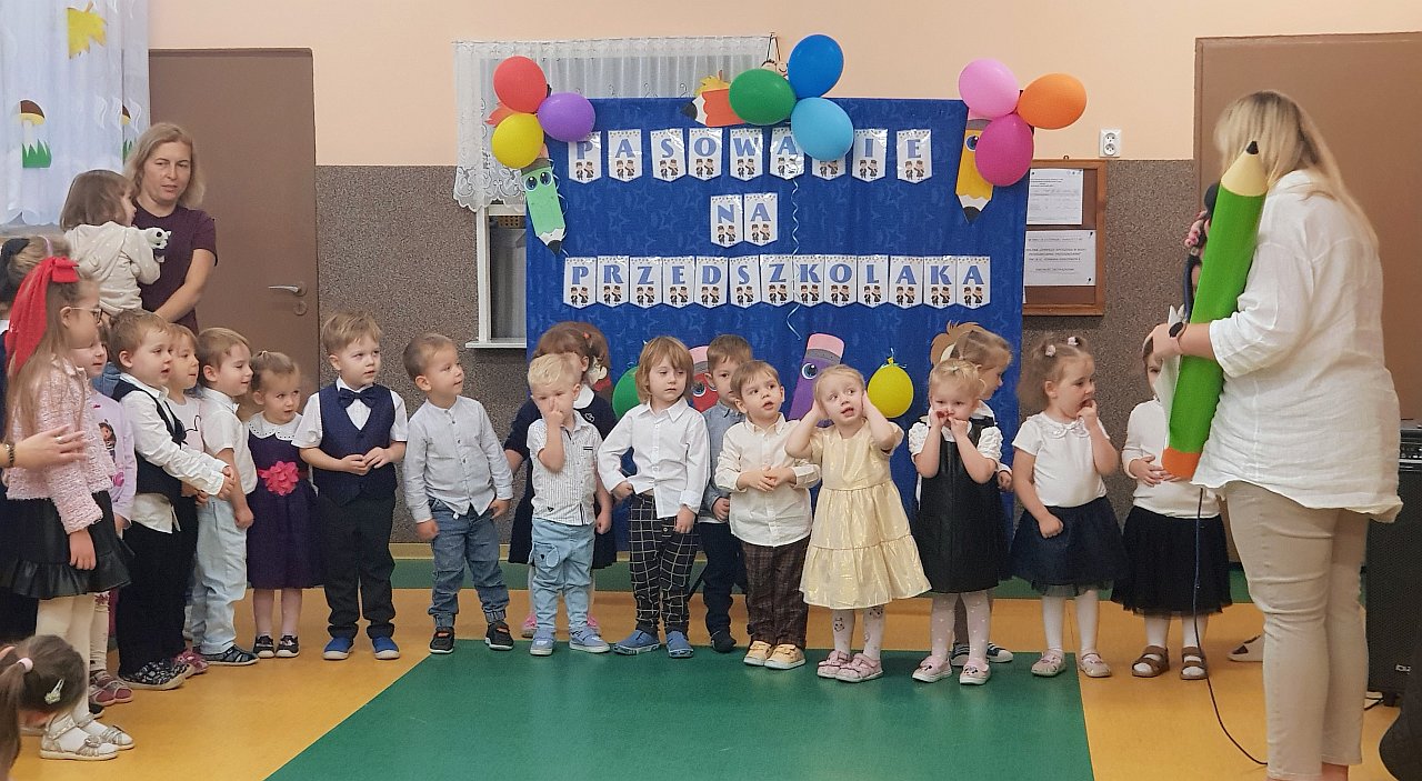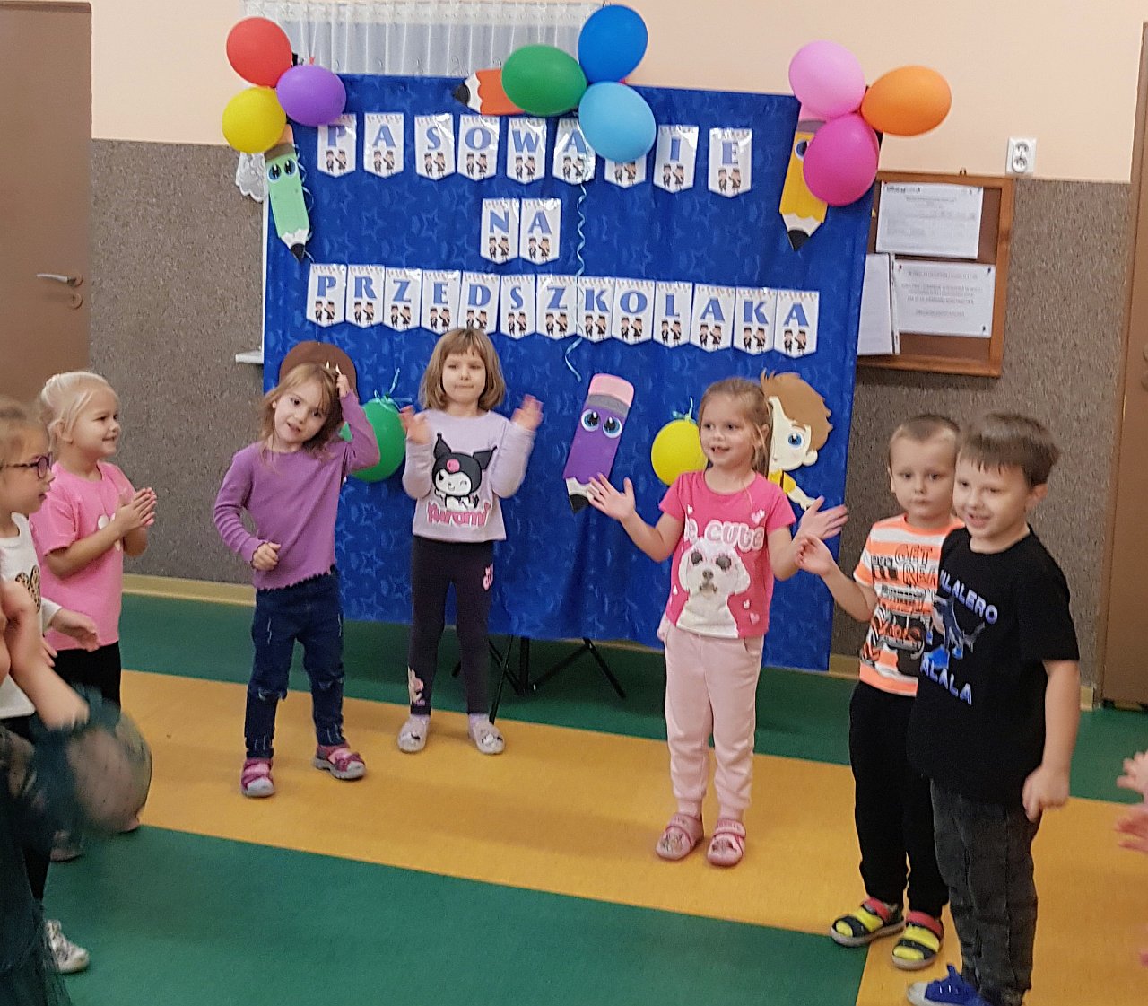 Uczestniczyliśmy w uroczystym Pasowaniu Na Przedszkolaka; przygotowaliśmy dla nowych koleżanek i kolegów krótki występ, potem wspólnie bawiliśmy się przy muzyce.