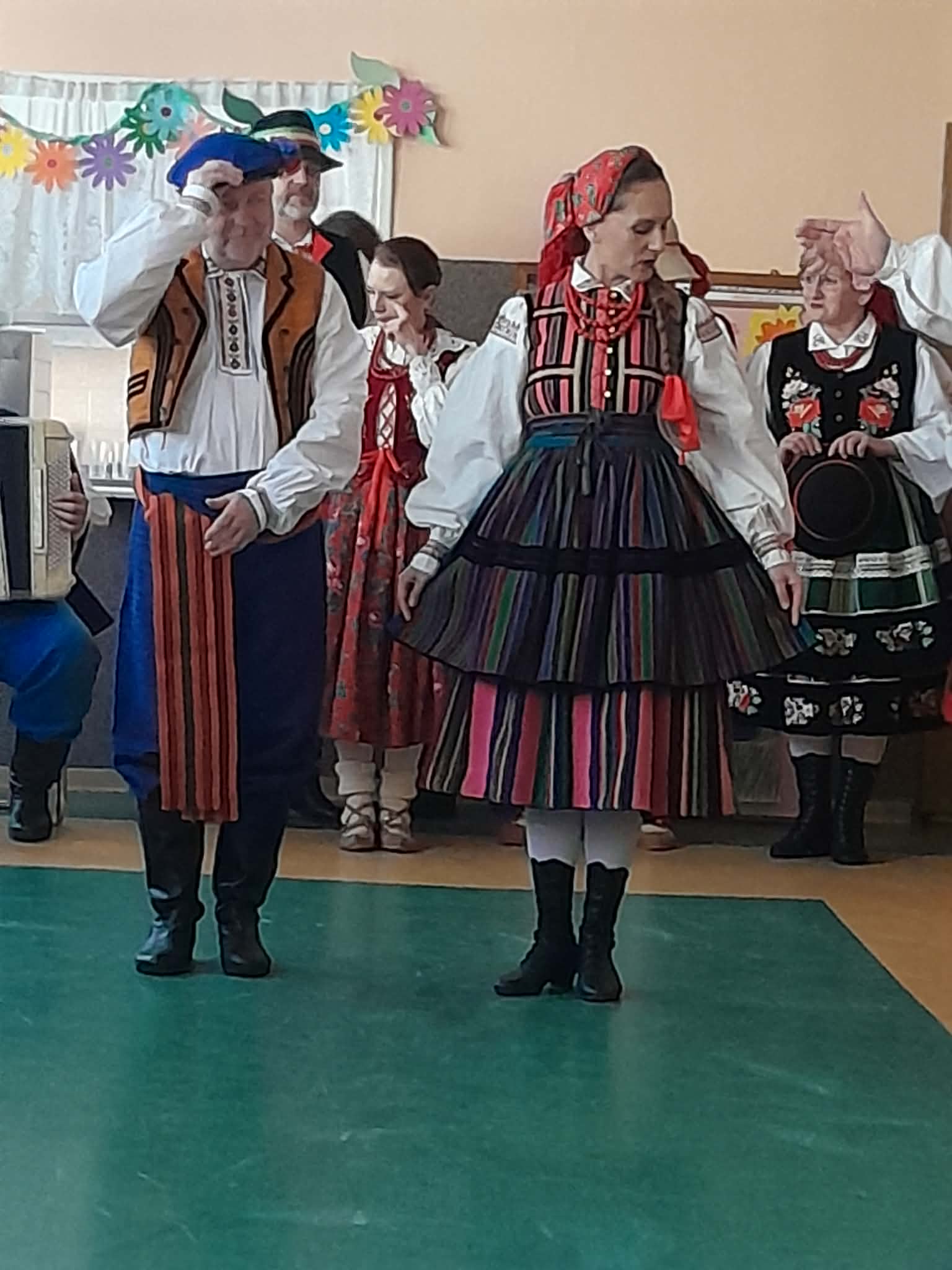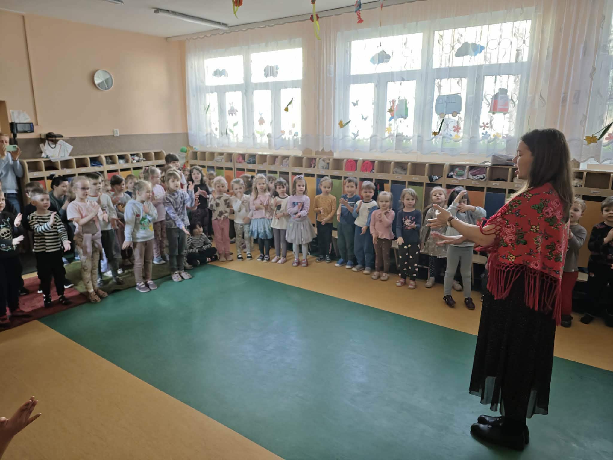 W minionym tygodniu mieliśmy ogromną radość gościć w naszym przedszkolu Zespół Pieśni i Tańca z Dobronia. Dzieci z wielkim zainteresowaniem oglądały występ artystów, poznając tradycyjne tańce, stroje, piosenki oraz instrumenty ludowe.