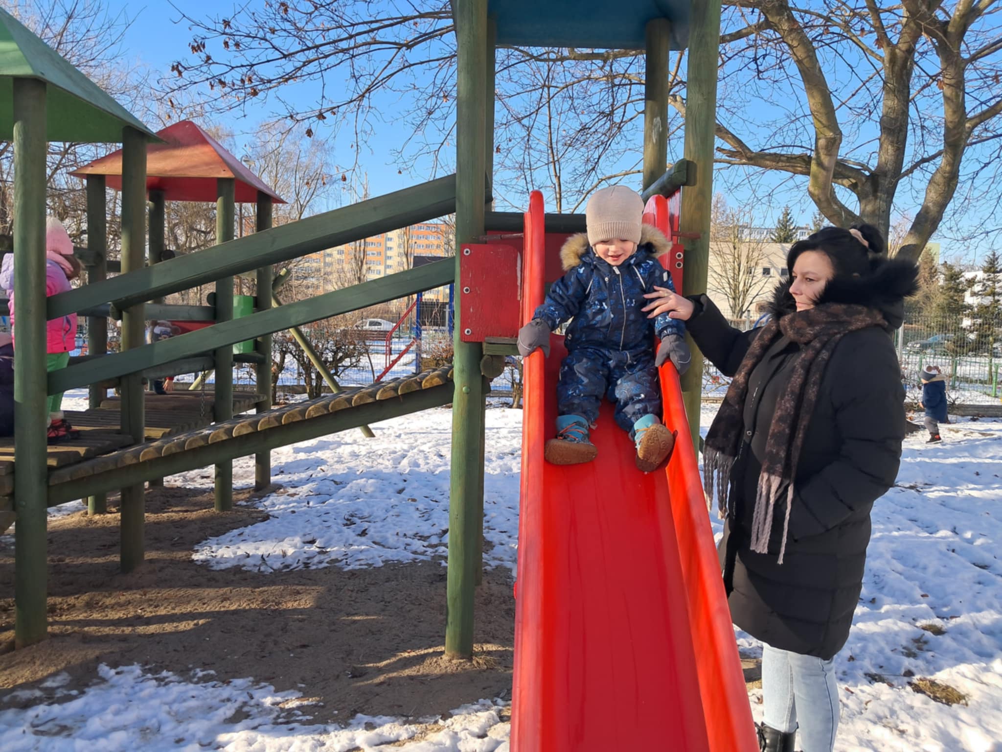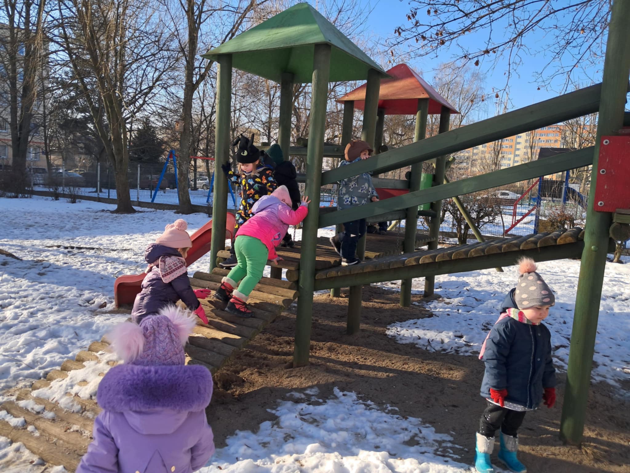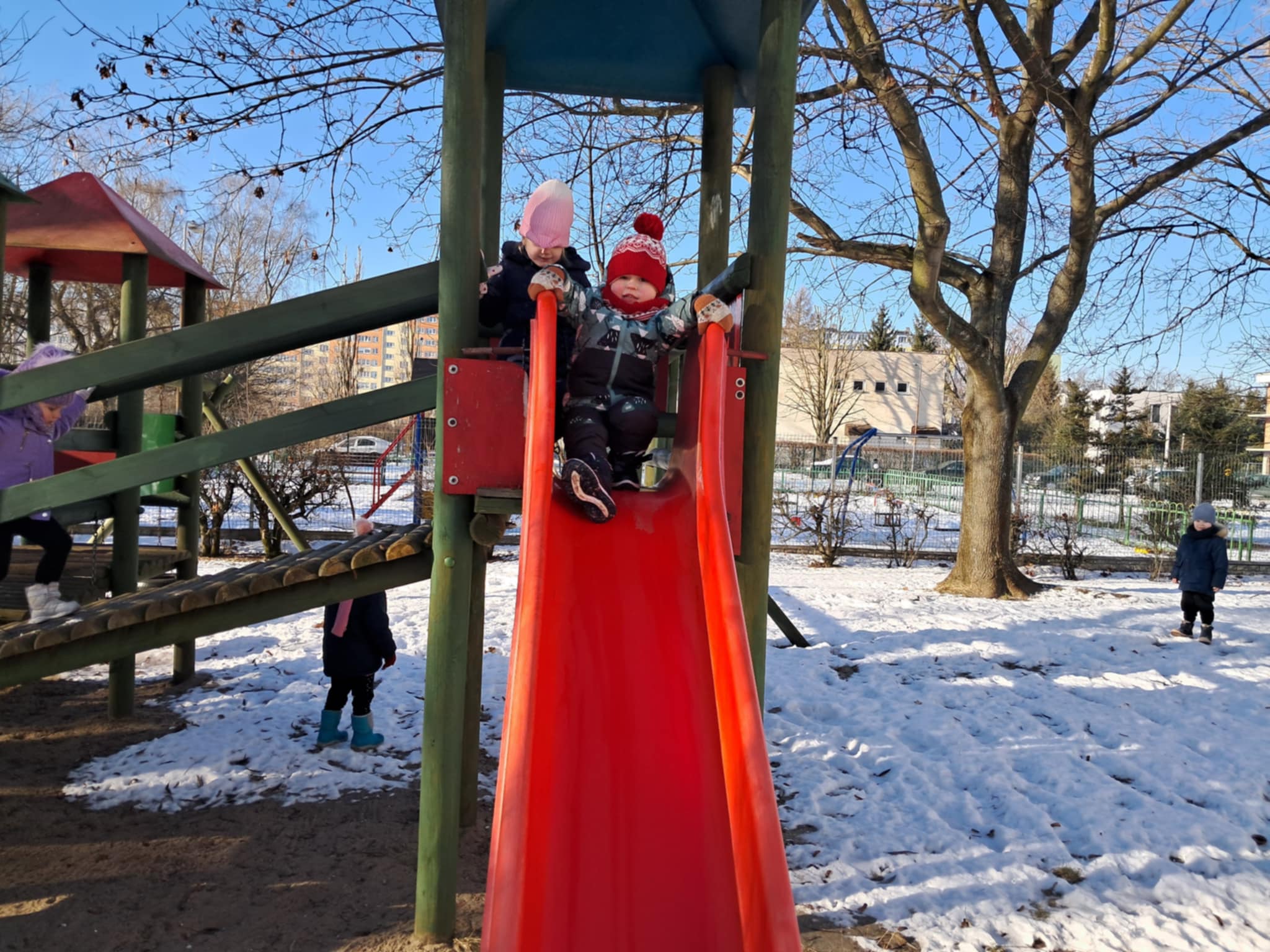 Wreszcie mogliśmy urządzić wesołe zabawy na śniegu. Dzieci całkowicie oddają się zimowej zabawie. Wykazują się niezwykłą pomysłowością w szaleństwach na śniegu. Mróz nikomu nie przeszkadza, a do przedszkola wracamy z szerokimi uśmiechami.