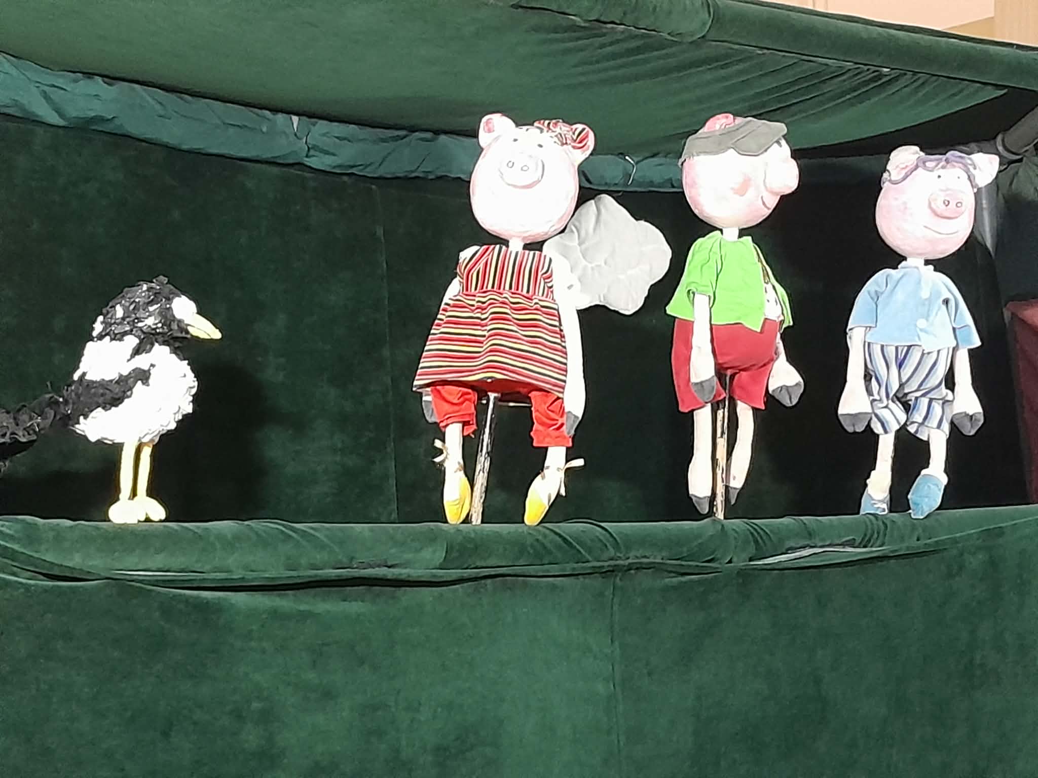 Tym razem przyjechali do nas ze spektaklem pt. "Trzy świnki". Choć historia ta jest doskonale znana wszystkim dzieciom z książek i opowiadań, to oglądanie jej w teatrze kukiełek pozwala odkryć tę bajkę na nowo. Wesołe przygody trzech świnek, to nie tylko wspaniała humorystyczna opowieść, ale źródło uniwersalnego przesłania, że pilna, wytrwała praca jest konieczna, by osiągnąć sukces.